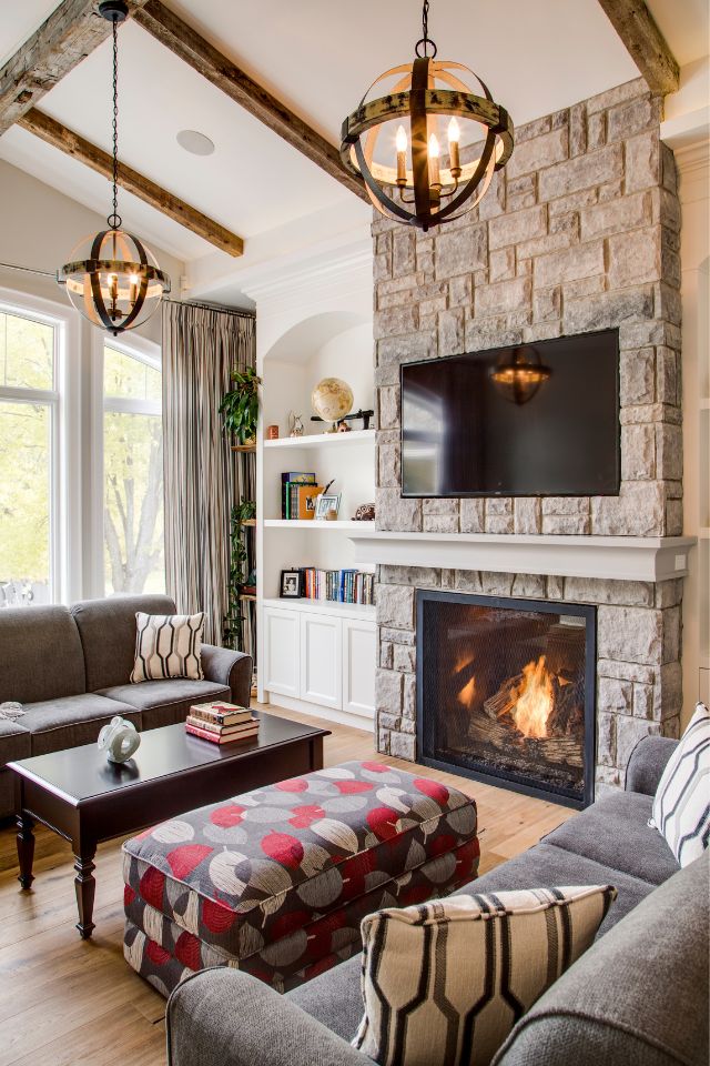 Incorporating fire into your rustic cabincore decor is a great way to instantly level up your home’s coziness factor. Whether it’s through a built-in fireplace or a wood-burning stove, highlighting the element of fire warms up your space –quite literally –and makes for the perfect cabin-like focal point.